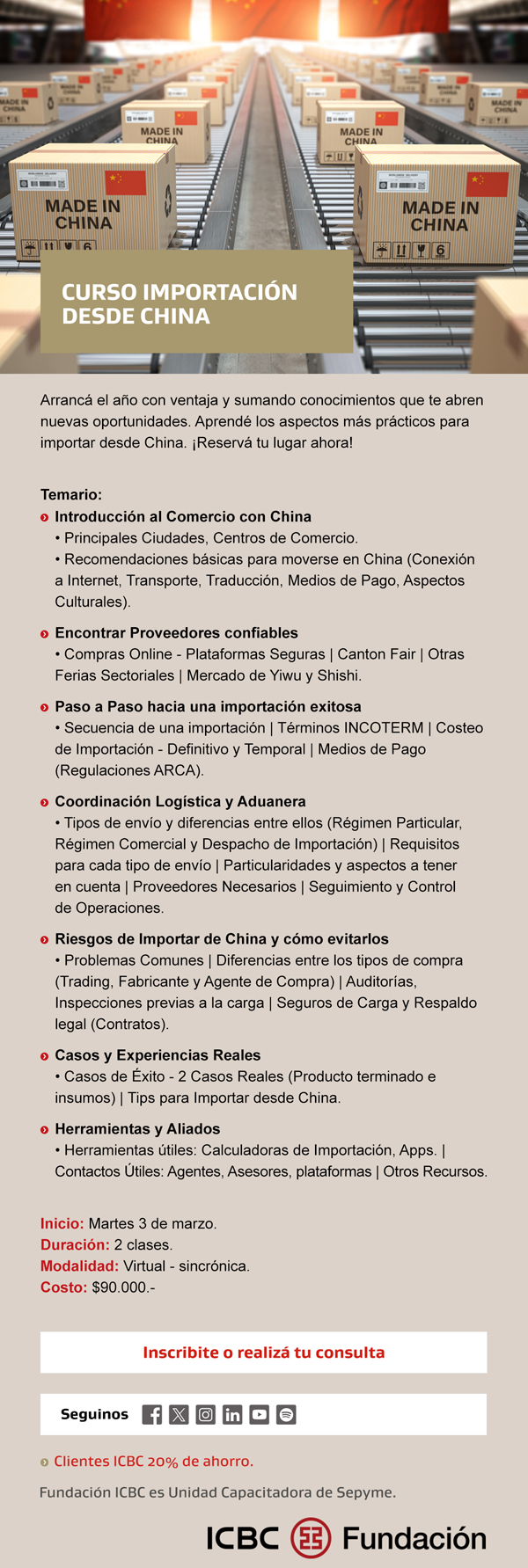 Arrancá el año con ventaja y sumando conocimientos que te abren nuevas oportunidades. Aprendé los aspectos más prácticos para importar desde China. ¡Reservá tu lugar ahora!